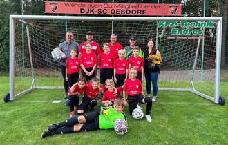 Unsere neu gegründete U11 E-Junioren-Mannschaft bedankt sich bei der Firma KFZ-Technik Endres aus Hausen für einen kompletten Satz Trikot der Firma JAKO.