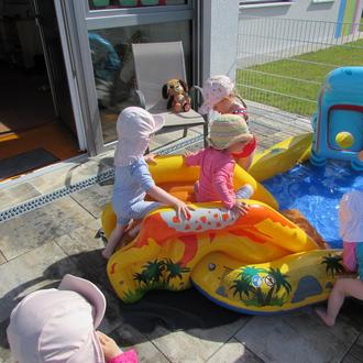 Für einige Stunden genossen wir bei strahlendem Sonnenschein an unserer „Strandbar“ die gemeinsame Auszeit und fühlten uns schon wie im Sommerurlaub. Wir Kinder planschten im Pool während unsere Eltern mit alkoholfreien Cocktails verwöhnt wurden und sich austauschten. Als Abkühlung gab es für alle Eis.