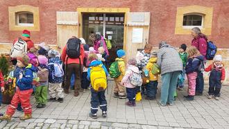 Mit dem Bus fuhren wir ins Freilandmuseum Bad Windsheim. Hier wurden wir von zwei Museumspädagoginnen erwartet und gingen gemeinsam mit ihnen auf Tour.