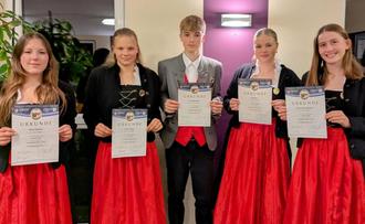 Gleich fünf junge Musiker haben kürzlich ihr D3-Leistungsabzeichen (Gold) beim Nordbayerischen Musikbund in Hammelburg in einer Prüfung absolviert, die zu Teilen aus theoritschen Fachwissen, Gehörbildung und aus einem solistischen Vorspiel auf dem jeweiligen Instrument bestand.