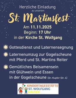 Dort erwartet die Kinder ein Martinsspiel und die gebastelten Laternen werden gesegnet.