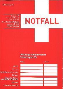 In der Notfallmappe können Sie alle wichtigen Unterlagen für den Notfall, wie Allergie-, Impf-, Implantat- oder Mutterpass, Blutgruppenvermerk, Hausarzt, Medikamentenplan etc. aufbewahren.
