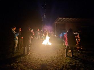Die Eltern konnten sich derweil auf der Wiese hinter dem Eichhörnchenplatz an Feuerschalen wärmen. Bei gegrillten Marshmallows, Stockbrot, Glühwein und vielen anderen Leckereien gab es für die Eltern und weitere Geschwisterkinder Gelegenheit sich auszutauschen.