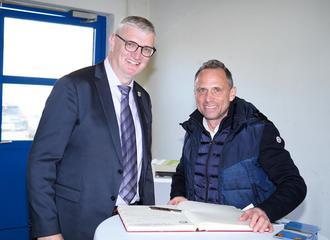 Umweltminister Thorsten Glauber beim Eintrag ins Goldene Buch