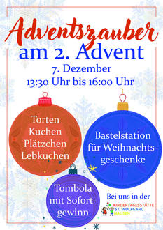 Herzliche Einladung an alle zu unserem Adventszauber in der Kita St. Wolfgang am 07.12. von 13:30 Uhr bis 16:00 Uhr!