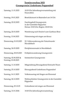 Nach Begrüßung und Totengedenken an die verstorbenen Mitglieder im Jahre 2024 lauschten alle den Berichten der Vorstände und Amtsträger. Zusammenfassend war der Spanienaustausch mit dem SEELE-Chor der DSV mit seinen gegenseitigen Besuchen im April und Oktober das Jahreshighlight des Vereins. Auch die zwei Benefizkonzerte, die aus dieser Verbindung heraus entstanden, prägten das Sängerjahr 2024 und zeihen sich mit in das neue Jahr 2025.