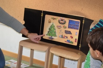 Täglich singen wir in unserem Adventsmorgenkreis, hören Geschichten von Rica einem kleinen Schäfchen, den Adventsmäusen, sowie Emma und Paul, die in unserem Erzähltheater Kamishibai zu finden sind.