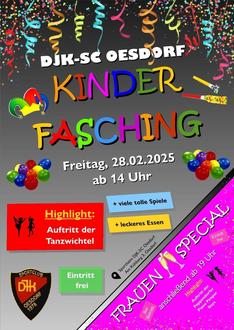 Herzliche Einladung zum Kinderfasching ins Sportheim Oesdorf ab 14:00 Uhr.
