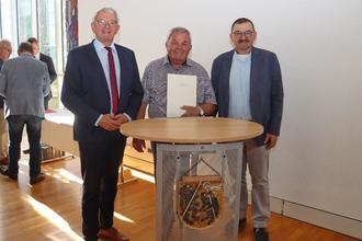 Gruppenfoto (Quelle: Heinrich Hoffmann) (Landrat Johann Kalb, Konrad Bäuerlein, 3. Bürgermeister Bernd Büttner) Der Markt Heiligenstadt i.OFr. bedankt sich bei Herrn Bäuerlein für sein großes Ehrenamtliches Engagement über die vielen Jahre hinweg als Feldgeschworener des Marktes Heiligenstadt i.OFr. und würde sich über seine weitere Unterstützung im Vermessungswesen sehr freuen.