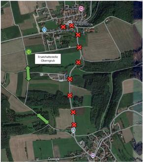 Die Bushaltestelle für die Ortschaft Oberngrub wird gemäß dem beiliegenden Lageplan verlegt. Wir bitten um Ihr Verständnis.