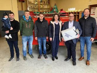 Am 14.03.2024 konnte sich die Freiwillige Feuerwehr Herzogenreuth-Geisdorf über ein Geschenk freuen: die Versicherungskammer Bayern als öffentlich rechtlicher Brandversicherer vergibt im Rahmen von Promotion-Aktionen Flachsauger mit ihrem Logo an Feuerwehren. Maschinist und Gruppenführer Sebastian Arnold hatte als örtlicher Ansprechpartner der VKB von dieser Aktion erfahren und bei der VKB deswegen angefragt: der Flachsauger im Wert von 700€ dient zur Wasserentnahme aus flachen Gewässern und wird anstatt des Sauggkorbs an die Saugleitung angeschlossen. Zur Übergabe an die Feuerwehr durch die Direktionsbeauftragte der VKB, Agneta Matera, waren auch der 1. Bürgermeister der Marktgemeinde, Stefan Reichold, der Geschäftsstellenleiter der Versicherungskammer Matthias Schreiner und Marktgemeinderat Josef Pickel anwesend.