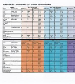 Ergebnisübersicht – Bundestagswahl 2025 – Aufteilung nach Stimmbezirk