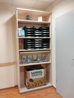 Gleichzeitig steht dort auch ein Karton für leere Druckerpatronen bereit, der gerne gefüllt werden kann.