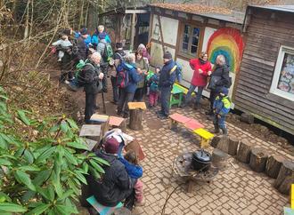 Da die Wandergruppe nicht nur den Nikolaus, sondern seit mehreren Jahren auch den Osterhasen regelmäßig trifft, nutzen der Waldkindergarten sowie die Eltern der Waldkinderkinder die Gelegenheit, sich für dieses besondere Engagement zu bedanken. Deshalb lud der Waldkindergarten die Wanderer als Zeichen der Wertschätzung zu einem gemütlichen Beisammensein am Lagerfeuer ein. Es gab Kaffee, Kuchen, Plätzchen und türkische Teigtaschen.