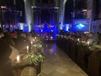 Das Ensemble der Familie Hess trat dabei gemeinsam mit dem „Jungen Chor“ auf, der mit eindrucksvollen und zuweilen fast „engelsgleichen“ Stimmen das Publikum beeindruckte. Einen wunderbaren Abschluss bildete der gemeinsam gesungene „Abendsegen von Christian Lahusen mit dem passenden Text „....wir sagen gute Nacht; und falten unsre Hände und danken dem, der wacht; der alle Welt umfängt mit Sonnen, Stern und Erde, und dem geringsten Herde sein Licht und Feuer schenkt.“ Ein wunderbarer Abschluss, der die Gemeinde in Vorfreude auf das Weihnachtsfest vereinte.
