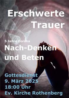 | 18.00 Uhr | Gottesdienst in Rothenberg – 5 Jahre Corona, die Kollekte wird für den Evang. Bund erbeten |