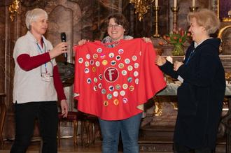 Anschließend ging es um eine ganz besonders tapfere Superheldin: Die an Leukämie erkrankte Frida, die vielen Gottesdienstbesuchern aus dem Krippenspiel als Maria und engagierte Sternsingerin bekannt ist. Damit sie bei ihrem Kampf die Unterstützung der Gemeindemitglieder spüren kann, bekommt sie ein feuerrotes Superheldinnen-Cape mit ganz vielen Stickern, auf die Kinder und Eltern ihre Genesungswünsche malen konnten.
