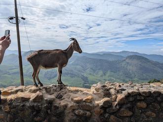 In Serpentinen ging es dann zu Fuß hinauf und man hielt immer wieder Inne, um die Bergziegen zu sichten, was anfangs ohne Fernglas nur sehr schwer möglich war. Aber wie aus heiterem Himmel kamen die Bergziegen den Hang herunter und präsentierten sich uns in hervorragender Weise.