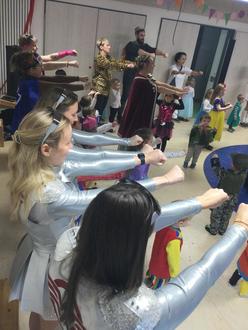 Die Vorfreude auf den nächsten Tag war auch schon da. Denn alle kamen nochmal verkleidet, um auch das Kinderprinzenpaar am Freitag zu begrüßen. Ähnlich, wie am Tag zuvor stellten sich die Maxis nochmal für ein Begrüßungstor auf. Herein kam freudig das Kinderprinzenpaar Emely die I. und Ruben der I. mit ihrem Funkenmariechen Paula.