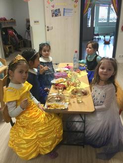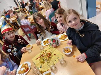 In der Krippe hatten die Kinder, die Möglichkeit sich etwas zurückziehen, wenn sie eine Pause und Ruhe brauchten. Im Bistro wurde eifrig für unser großes buntes Faschingsbuffet geschnippelt und hergerichtet.