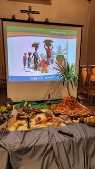 Wiederum Frauen der katholischen und evangelischen. Gemeinde gestalteten den WGT dieser nigerianischen Christinnen, die ein Leben voller Lasten stemmen müssen, nach. Armut, Gewalt gegen Frauen. Bewaffnete Konflikte, terroristische Überfälle, mangelnde Gleichberechtigung, große Sorgen um die Kinder – all das bewältigen sie im Glauben und Vertrauen auf Gott.