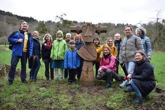 In der Weidenau angekommen faszinierten ein einmaliges gotisches Kreuz und seine Deutung die Teilnehmer:innen.