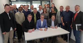 Gemeinsam mit Landrat Christian Engelhardt und Dr. Matthias Zürker unterzeichneten alle Bürgermeisterinnen und Bürgermeister die Absichtserklärung.