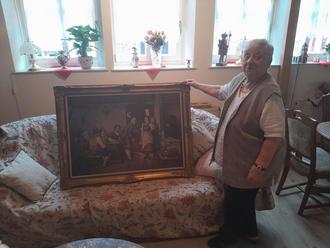Ein Bild mit kunstvollem Rahmen des bekannten Hirschhorner Malers Georg Schölch besaß Inge Heiß lange Jahre und es zeigt eine Wirtshausszene von früher. Nun hat sich Frau Heiß entschieden, das Bild der Stadt Hirschhorn zu schenken.