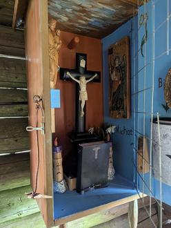 Am vergangenen Sonntag 13. April wurde festgestellt, dass der Vandalismus jetzt auch auf der Hoppe-Hütte angekommen ist. Das Gitter zum Schrein wurde herausgerissen sowie zwei Kreuze entfernt, die zwar in den Schrein zurückgelegt wurden, aber die Beschädigung ist doch recht groß.