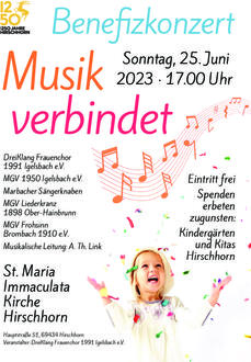 Am Sonntag 25. Juni findet in der St. Maria Immaculata Kirche Hirschhorn unser Benefizkonzert zugunsten der beiden Kindertagesstätten in Hirschhorn statt.