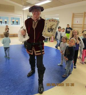 Die Attraktionen aber waren sein Schwert und sein Schild mit eigenem Wappen, das er uns mitbrachte und zeigte. Jedes Kind das wissen wollte, wie schwer denn dieses Schwert und das Schild ist, durfte es festhalten.