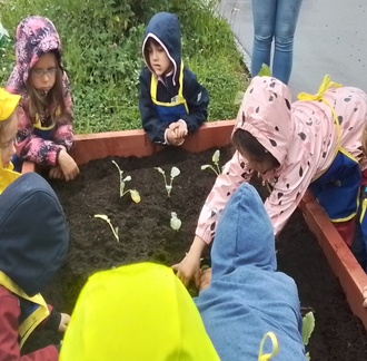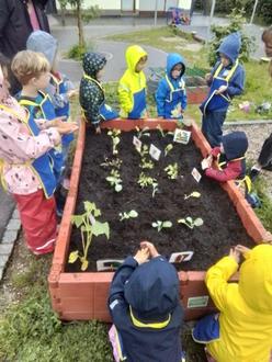 Fleißig haben unsere Ganztageskinder gebuddelt, Gemüse eingepflanzt, Karotten und Radieschen ausgesät. Interessiert haben die Kinder Kohlrabi, Gurken und Spinat eingesetzt. Danach mussten natürlich die Samen und Pflanzen gegossen werden. Obwohl das Wetter regnerisch war, hatten die Kids sehr viel Spaß dabei.