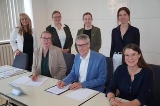 "Wir stehen mit dem, was wir im Rahmen des Förderprogramms Bildungskommunen vorhaben, vor einer großen Aufgabe. Ich bin froh, dass unsere Stabsstelle Bildungskoordination dabei kompetente Unterstützung erhält", betont Landrat Christian Engelhardt bei der offiziellen Unterzeichnung der Kooperationsvereinbarung. "Am Ende des Prozesses sollen die Bürgerinnen und Bürger eine digitale Plattform an die Hand bekommen, über die sie gebündelt alle regionalen Bildungs- und Weiterbildungsoptionen und damit ganz bequem Futter für ihren persönlichen Bildungshunger finden können."