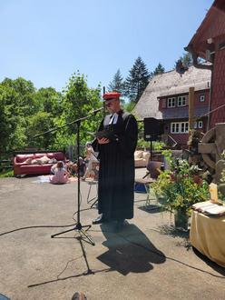Der Ev. Bläserchor brillierte musikalisch beim Gottesdienst der Südkurvengemeinden zu Pfingsten. Das Ambiente vom Forsthaus in Michelbuch zog viele Besucherinnen und Besucher aus nah und fern an. Selbst das Wetter trug zu einem rundum gelungen Pfingsttag mitten im Wald bei. Pfarrer Muth fand in seiner Predigt die passenden Worte.