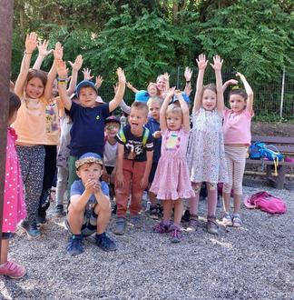 Mit großer Vorfreude versammeln sich die Kinder, um endlich zu ihrem beliebten Spielplatz los zu marschieren. Bepackt mit einem Rucksack auf dem Rücken laufen sie Hand in Hand zu ihrem Ziel.