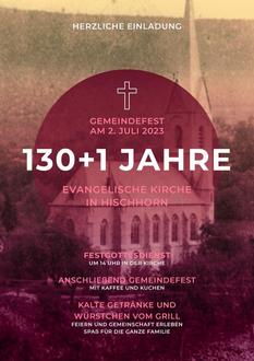 Am Sonntag 2. Juli findet unser Gemeindefest anlässlich der 130+1 Jahr-Feier unserer Evangelischen Kirche Hirschhorn statt. Wir beginnen um 14 Uhr mit einem Gottesdienst und lassen es uns anschließend auf der Kirchenwiese bei Kaffee, Kuchen und Würstchen gut gehen.