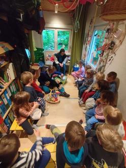 Vor einiger Zeit hat der Waldkindergarten eine Spende der Hirschhorner Zahnärztin Frau Dr. Zenthöfer erhalten. Dank dieser konnten wir nun eine Reise in die Welt der Geschichten in Form eines Ausflugs in eine Buchhandlung unternehmen. Also machten wir uns an einem schönen Morgen im Mai auf und fuhren mit der S-Bahn nach Eberbach, denn wir hatten uns entschieden, das Geld direkt in die Leseförderung zu investieren.