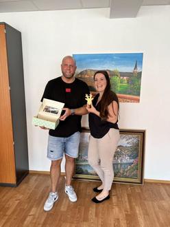 Da am 01.06.2023 jedoch Pfingstferien waren, verlagerten die Beteiligten das Vorhaben kurzerhand auf den 12.06.2023. Im Namen des Vorstands des Gewerbevereins besuchte Maximilian Meidinger an diesem Tag zuerst Lea Günther in der Kita Entdeckerwelt, schaute anschließend in jeder Klasse der Neckartalschule bei Sonja Tiemesmann vorbei und beendete seine Runde im Kindergarten GerneGross in Langenthal bei Marcella Walter-Gleich.