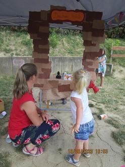 Nun konnten die Kinder mit ihren Eltern losziehen und an den verschiedenen Stationen Stempel sammeln. Es wurde gemeinsam ein Wappen gestaltet oder in der Drachenhöhle die Drachendosen abgeworfen.