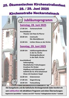| 10:00 Uhr | Ökum. Festgottesdienst in der Ev. Kirche Neckarsteinach, parallel Kindergottesdienst in der kath. Kirche, Neckarsteinach |