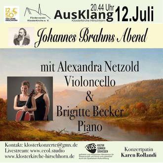Lieben Sie Brahms? Diese, bei Film- und Musikfreunden berühmte Frage dürfte Alexandra Netzold aus vollem Herzen bejahen. Denn grade erschien ihre neueste CD mit Cello-Sonaten von Brahms. Die Vorbereitungen zu dieser CD fielen – wie passend – in das Brahms-Jahr, das die Künstlerin nun damit auch für sich abschließt. Auf dieser CD werden die beiden Cellosonaten op. 38 und 99 gegenübergestellt, Werke, die für jeden Cellisten eine zentrale Rolle spielen. In ihrem Ausklang-Konzert gewähren uns die Künstlerinnen einen musikalischen Einblick in dieses Schaffen.