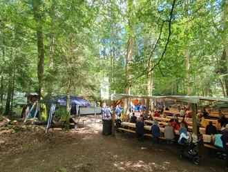 Neben einem reichhaltigen Angebot an Speisen, Getränken und regensicheren Sitzplätzen, erwarten euch Infos zur Imkerei, ein Bienenvolk im Schaukasten und der "Bienenbollen"-Stand der LandFrauen Brombach, wo ihr selbst eine kleine Blühwiese für euer Zuhause herstellen und mitnehmen könnt.