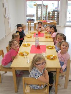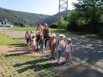 Und der Imker, Herr Hess, hat uns was von den Bienen erzählt. Er hat gesagt, es gibt Drohnen, Arbeiterinnen und Königinnen in einem Bienenstock. Und nur die Königin legt die Eier. Der Herr Hess hat die Bienenkönigin sogar in die Hand genommen und die hat nicht gestochen. Er hat uns auch die Drohnen gezeigt, die können nicht stechen. Das waren ganz liebe Bienen, die haben wirklich überhaupt nicht gestochen. Dann hat der Imker eine Wabe herausgenommen und hat sie uns ganz nah gezeigt. Da haben wir sogar den Honig gesehen.