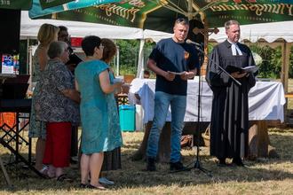 Zum Langenthaler Dorffest feierten wir wieder einen ökumenischen Gottesdienst. Trotz Hitze und Sonne fand jeder ein schattiges Plätzchen, denn die Langenthaler Feuerwehr hatte auf dem Festplatz am Ulfenbach viele Zelte und Sonnenschirme aufgestellt.