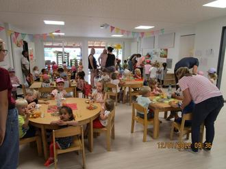 Clara meint: „Als alle Schulkinder dann fertig waren, sind wir zusammen ins Bistro. Dort gab es für alle Kinder Würstchen, Eier, Melone, Gemüse, Kuchen und andere leckere Sachen. Da haben wir dann gemeinsam gefeiert. Das war schön.“