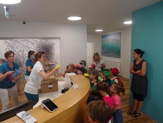 Die letzten Wochen in der sind für die Schulanfänger immer sehr spannend. Es finden viele Ausflüge und Aktionen für die Großen statt. So waren die Schulanfänger im Juni bei der Zahnarztpraxis Zenthöfer in Hirschhorn. Hier wurden den Kindern die Praxisräume und die medizinischen Instrumente der Zahnarztpraxis gezeigt. Vieles konnte ausprobiert und erfragt werden.