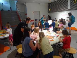 Zum Schluss waren die Großen auf der MS Experimenta. Hier gab es viele spannende Experimente, Spiele, Bastelangebote und einen Film zu sehen.