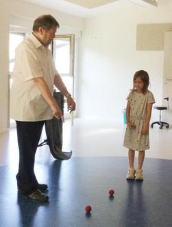 Dann hat er einen Ball in seine Hosentasche gesteckt und der andere Ball hat ein Kind in die Hand bekommen und musste die Hände übereinander richtig gut zu machen. Dann wurde der Zauberspruch „Hokus Pokus Fidibus, dreimal schwarzer Kater – Ball in der Hand!“ gesprochen. Als dann das Kind die Hände geöffnet hat, waren da plötzlich zwei Bälle drin. Wir dachten der Zauberer veräppelt uns und hat noch den Ball in seiner Hosentasche. Er hat uns dann aber seine Hosentaschen gezeigt und da war wirklich kein Ball mehr drin. Also kann er echte Zaubertricks.