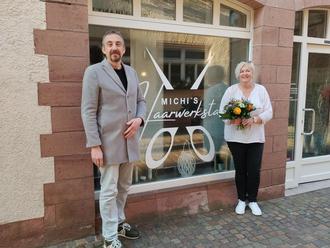 Zur offiziellen Eröffnungsfeier von „Michis Haarwerkstatt“ am 10.01.2024 überbrachte Bürgermeister Martin Hölz im Namen des Magistrats der Stadt Hirschhorn Glückwünsche. Er freut sich sehr, dass das Friseurgeschäft in gute Hände übergeben werden konnte und wünscht Frau Dombrowski und ihrem Team alles Gute für die Zukunft.