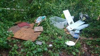 Unbekannte Verursacher verunreinigten durch illegale Müllablagerung zwischen dem 11. und 20. Juli einen Wirtschaftsweg im Bereich der Straße zur Burg, kurz hinter der Brücke.